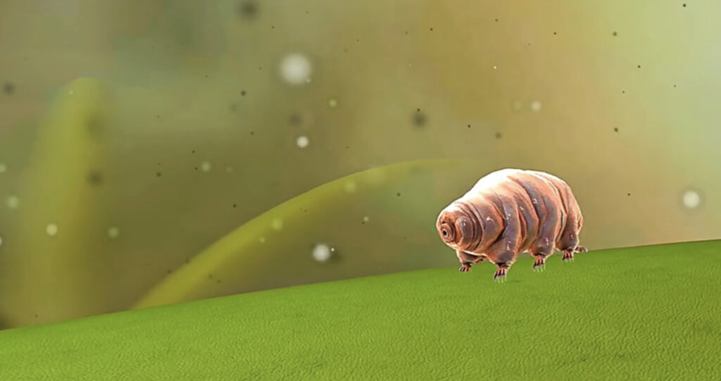 Mon premier invité est minuscule : le tardigrade, qu’on surnomme aussi l’ourson d’eau. Invisible à l’œil nu, il ressemble à une petite peluche potelée totalement inoffensive. Et pourtant, c’est probablement le champion toutes catégories de la survie sur notre planète.